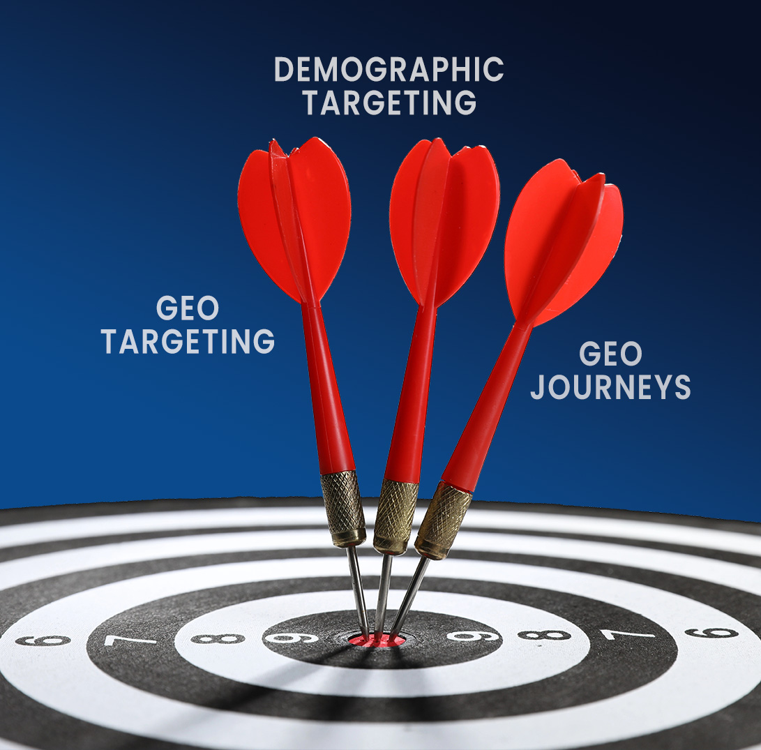- Hyperlocal targeting — by ZIP code, county, DMA, or custom radius